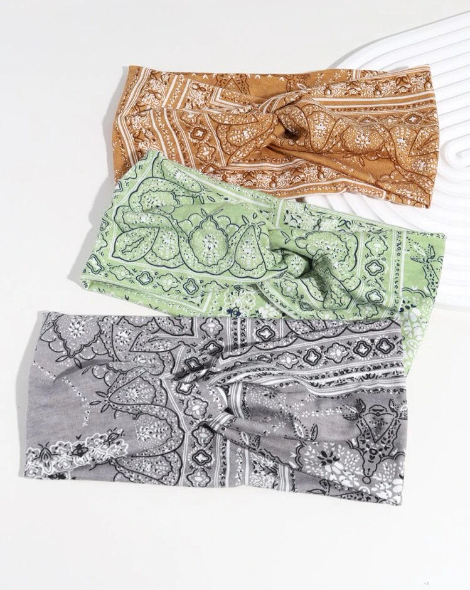 Deze leuke Bali haarbanden passen bij elke outfit en zijn verkrijgbaar in de kleuren camel, mint en grijs.