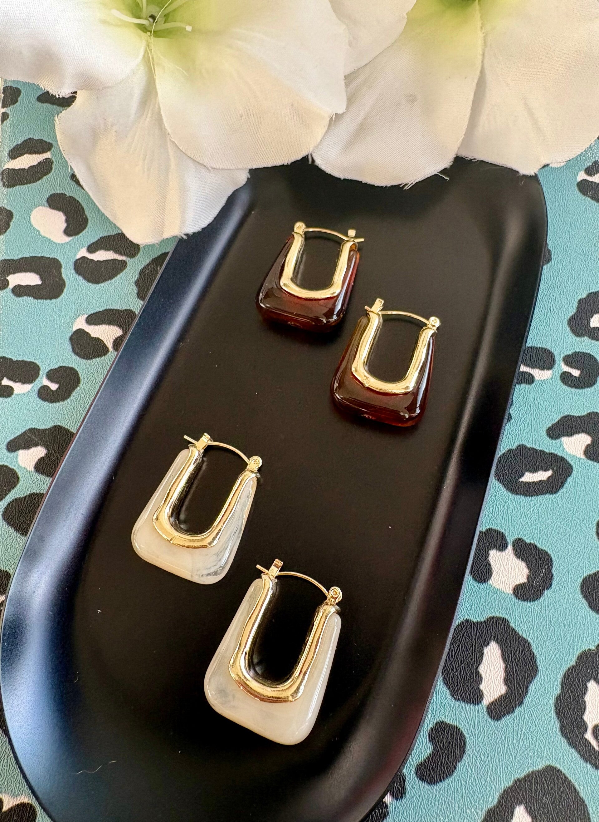 De oorbellen zijn van roestvrijstaal en verkleuren niet! Keuze uit: bruin en wit.