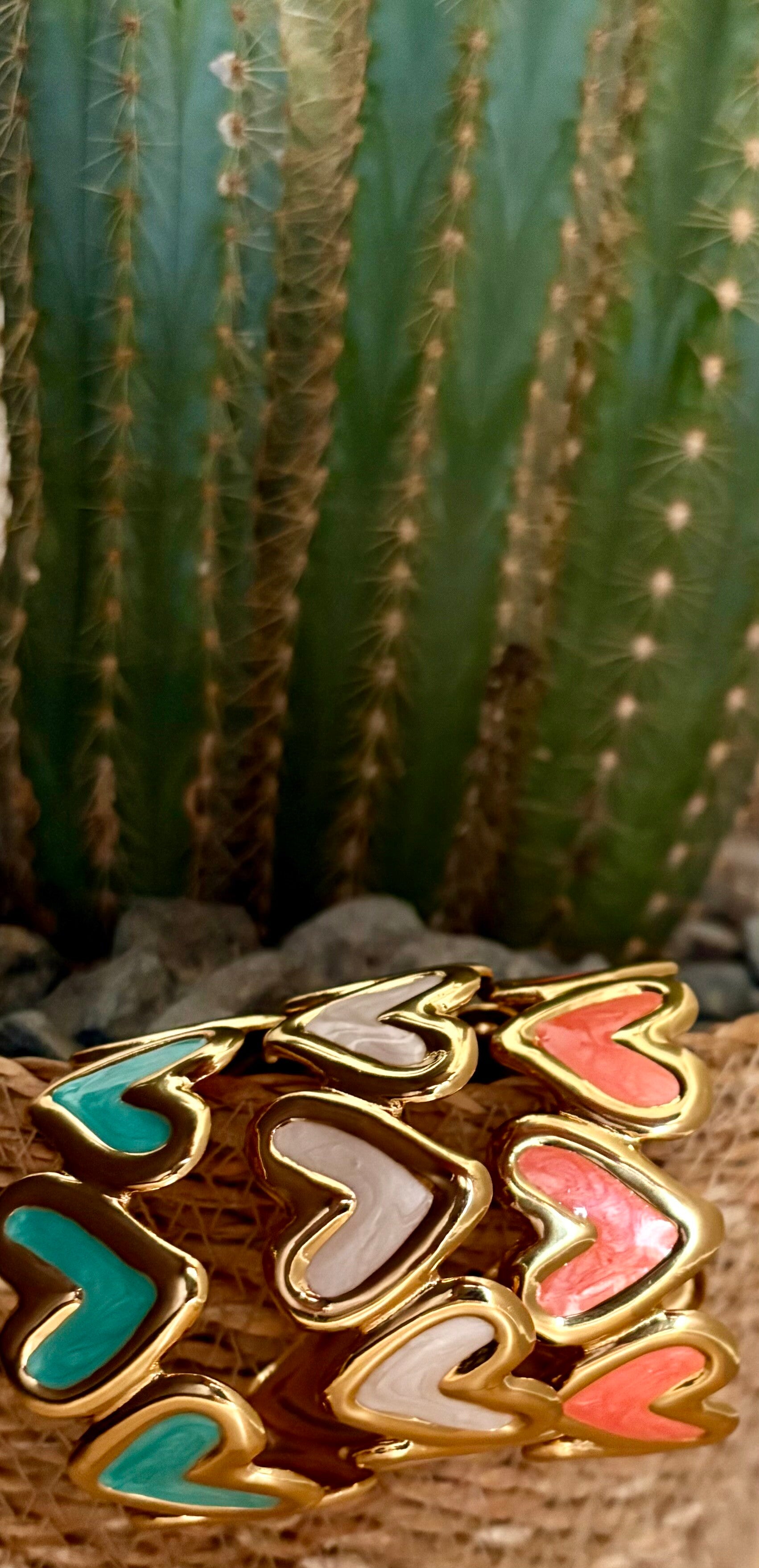 Deze kleurrijke heart bangles kunnen niet ontbreken bij jouw zomerse outfit! Keuze uit:turquoise, parelmoer en koraal.